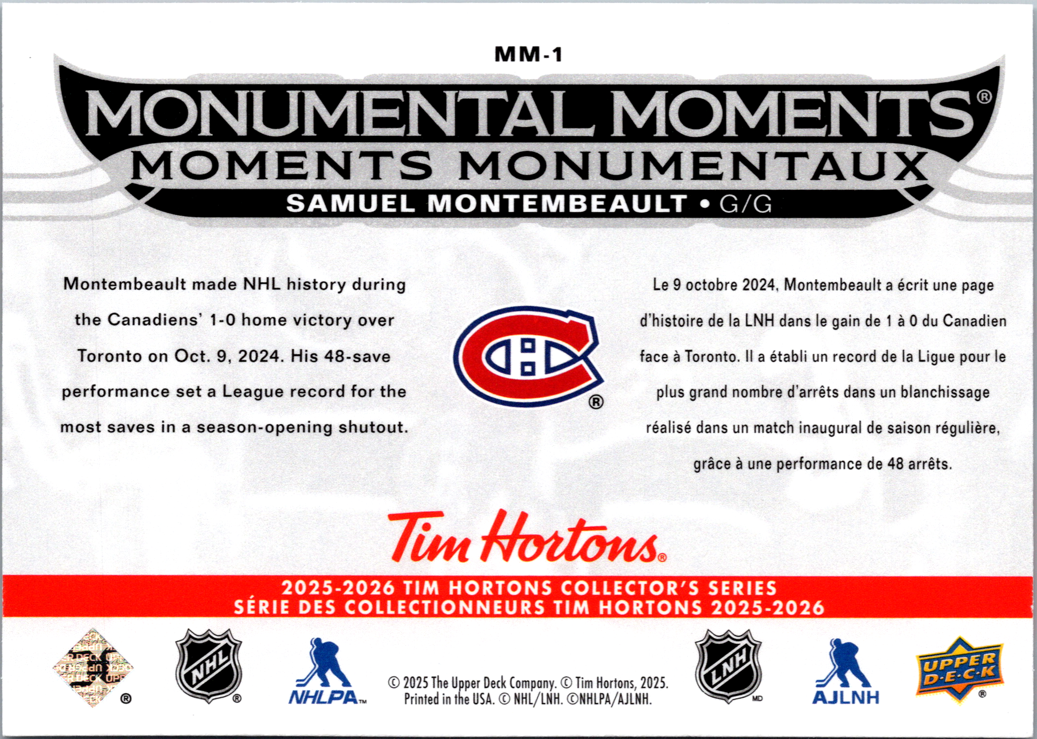 Tim Hortons | 25-26 | MM-01 | Samuel Montembeault